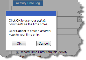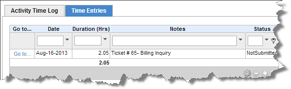 The Time entry tab will appear next to the Activity Time Log. You are able to see the time entry and change the billing status, or anything else if needed. The system will pick up the default in the NEXT preferences on the Billing Status.