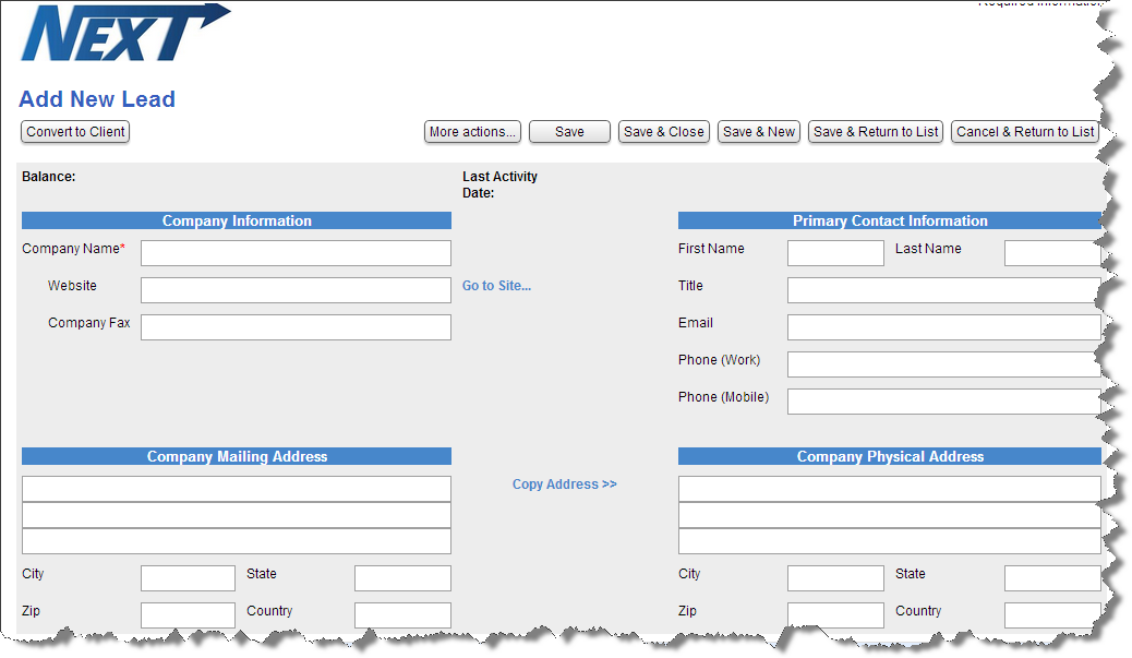 The “Activity Log” will show any activities done for this client. The user can click “Add New Activity” to enter a new time tracking entry.