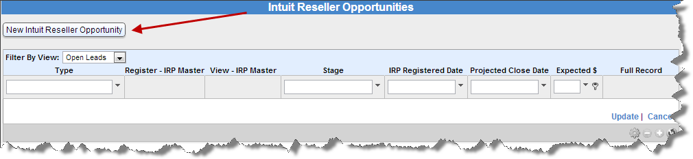 The “Intuit Reseller Opportunities” section will show any open opportunities, or the user can add one from the “New Intuit Reseller Opportunity” button.