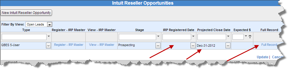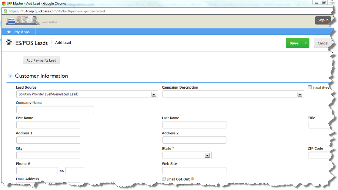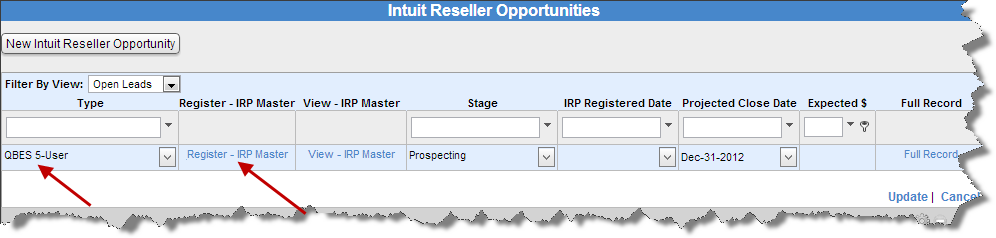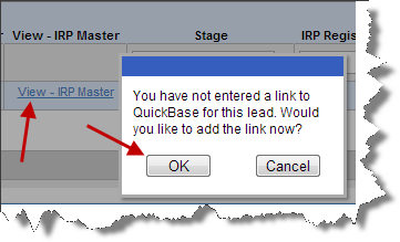 If the lead came from Intuit, then click “View – IRP Master”. If the lead is not in QuickBase, then the user will receive a prompt to enter the link, choose “OK,” and enter the link.