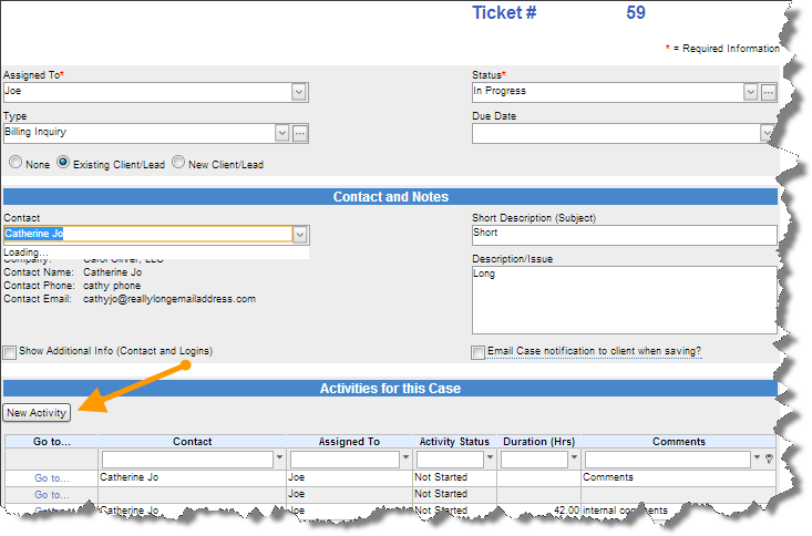 You can assign the follow up activity to another user. Make sure to enter in the “Follow Up Internal Comments” information so that the NEXT user that you assigned the follow up to knows what is expected of them. They will also be able to see the Internal Comments for the activity that was immediately prior to their activity.