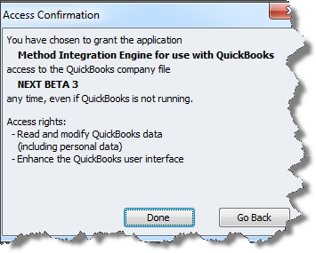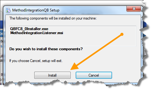 A window will pop up notifying you that the QB installer and Method Listener are about to be installed. Click on the “Install” button.