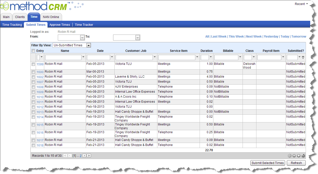 Time Tracking - Allows you to fill out the form just as you would from the main desktop.
