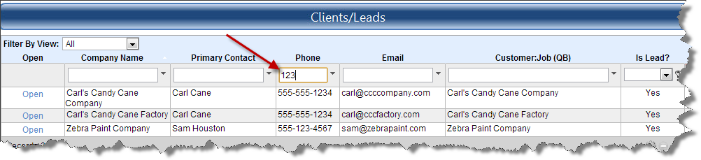 Choose a search field. Type a few letters or numbers and press the enter key.