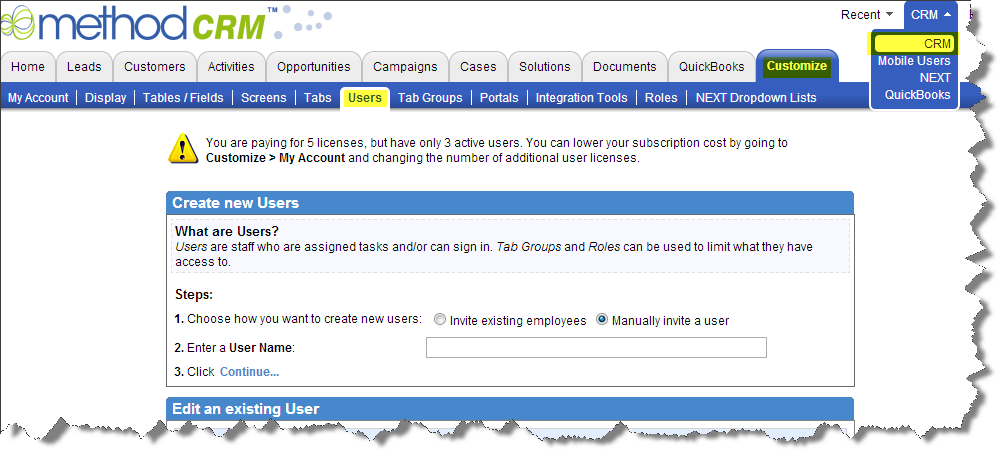 To verify the number of users that are on your account, go to Customize, Users. This amount will let you know the number of active users that you have on your account.